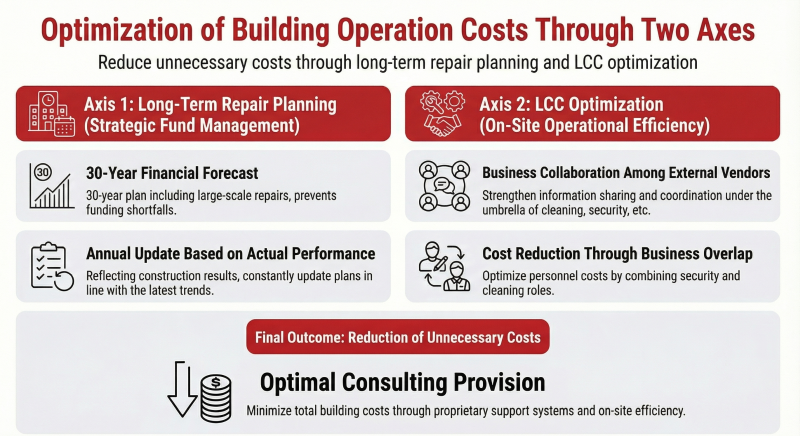 Leveraging Japanese-standard expertise, we develop data-driven repair plans that forecast facility needs decades into the future. This proactive approach eliminates the risk of unexpected, high-cost repairs and stabilizes your financial planning. We transform "emergency fixes" into "strategic investments" to maintain peak asset value.